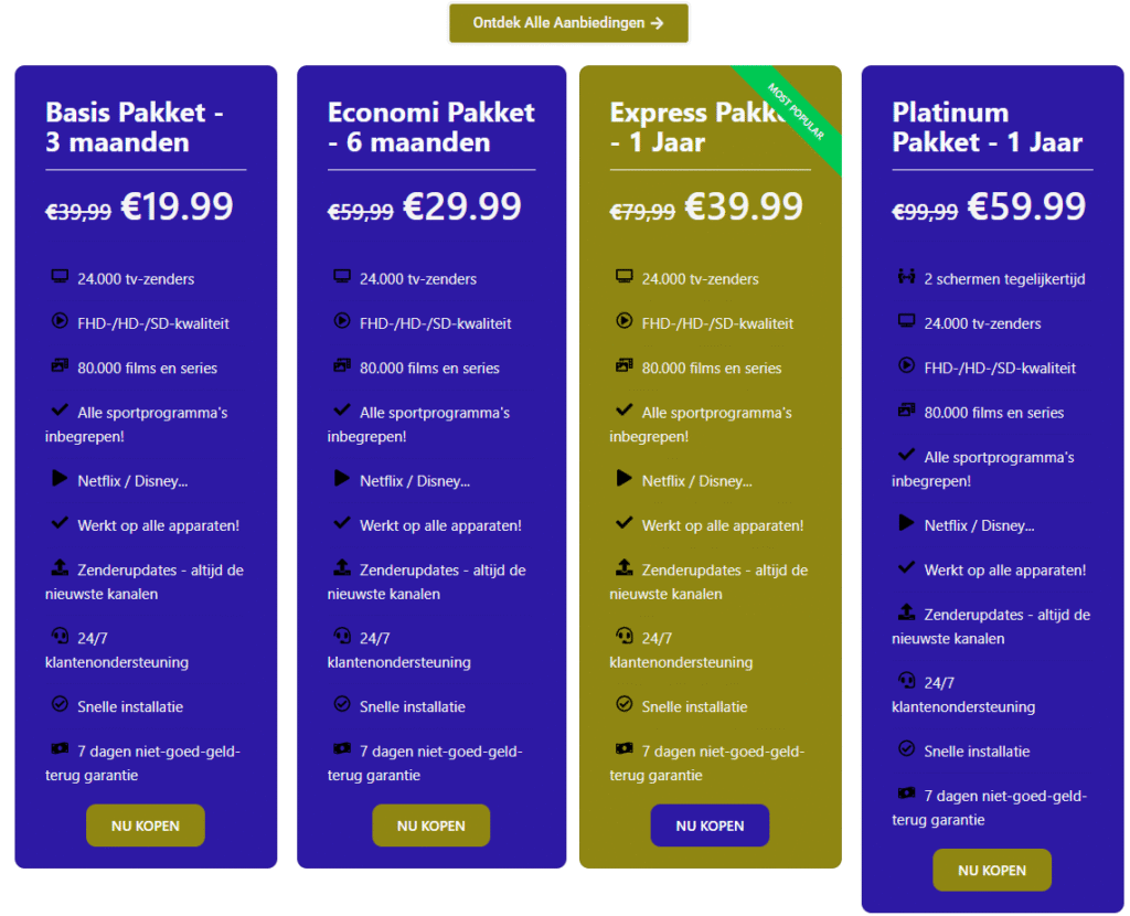 💡 Beste Deal voor IPTV kopen: Het Express-abonnement biedt de maximale besparing voor slechts €3,33 per maand! Perfect voor gezinnen die op zoek zijn naar betaalbare televisie.